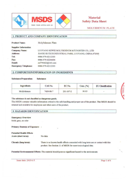二、产品介绍: 公司产品主要分为传统产品和新兴产品两大类。 1、传统产品-钼电极、钼板、钼片 传统产品主要用于各种专用高温炉,单晶长晶炉,蓝宝石长晶炉,玻璃纤维、玻璃容器和陶瓷纤维等工业池窑等 2、新兴产品 钼管靶,新型显示(LCD)和玻璃发电、薄膜发电镀膜材料,国内唯一全流程生产企业,已顺利完成国产化,替代了进口,并出口韩国三星。 钼基高性能高温合金材料,国家短板关键材料,替代进口迫在眉睫。